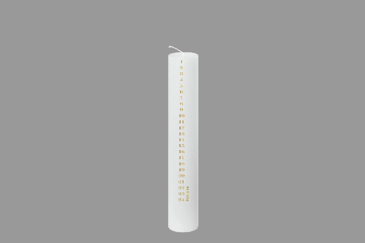 Datolys/Kalenderlys i hvid med Sølvtryk