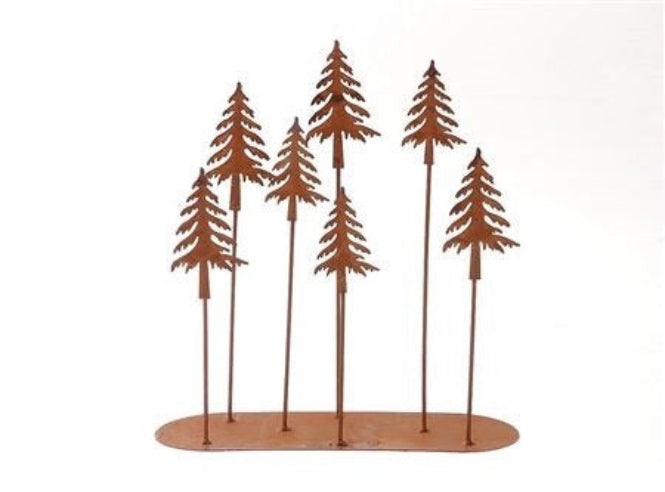 Dekoration med grantræer i rustlook – 28 x 10 x 30 cm