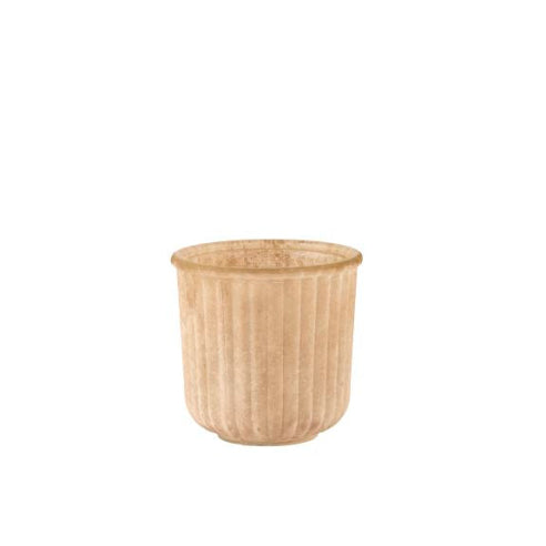 Smuk glas potte i en smuk gylden nuance med elegant rillet struktur. Det let transparente glas giver et eksklusivt og stemningsfuldt udtryk, perfekt til små planter, blomster eller som dekorativ lysestage. Den passer smukt ind i både moderne og klassisk indretning – især i juletiden.