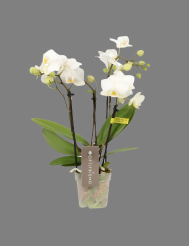 En 4-grenet hvid orkidé er et perfekt valg til alt fra stilren boligindretning til værtindegave – en nem, elegant og langtidsholdbar plante med minimal vedligeholdelse.