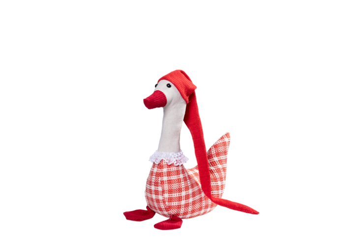 Charmér hjemmet med Julegåsen Esther fra Nordiq – en hyggelig og dekorativ figur, der spreder julestemning overalt, hun står. Gåsen er iført klassisk rødt og hvidt ternet stof og har søde detaljer som nissehue og blondekrave.