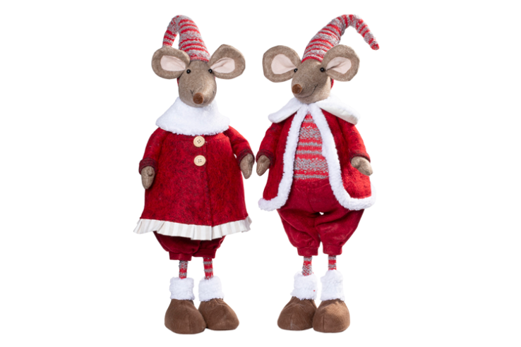 Musene måler 40 cm i højden og står stabilt, så de passer perfekt som pynt på en hylde, i vindueskarmen eller som en del af juledekorationen.