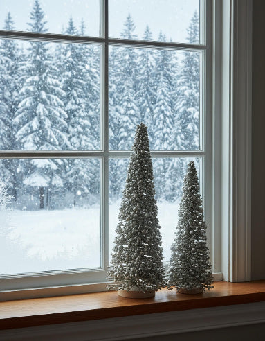 Elegant juletræ i smuk champagnefarvet nuance med glitrende overflade, der fanger lyset og skaber en eksklusiv julestemning. Perfekt til vindueskarmen, på et fad med pynt eller som del af en dekorativ juleopstilling. De to størrelser komplimenterer hinanden smukt, når de sættes sammen.