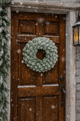 Smuk og naturtro krans med let sneeffekt, der giver et elegant vinterligt udtryk.
