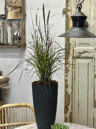 Den er plantet til med dekorativt prydgræs, som giver et naturligt og luftigt udtryk. Perfekt til at skabe højde og liv i din indretning – både i entreen, orangeriet, stuen eller på terrassen.