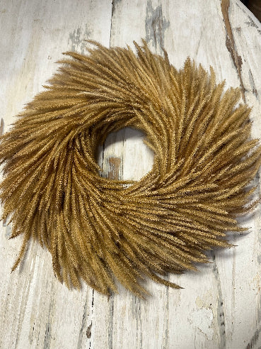Smuk dekorationskrans i varm gyldenbrun tone med blød, silkeagtig struktur. Kransen har et naturligt og fyldigt udtryk, der gør den perfekt både liggende som base for lys og dekorationer – eller hængende som enkel vægpynt. Skaber en hyggelig og stilren stemning året rundt.