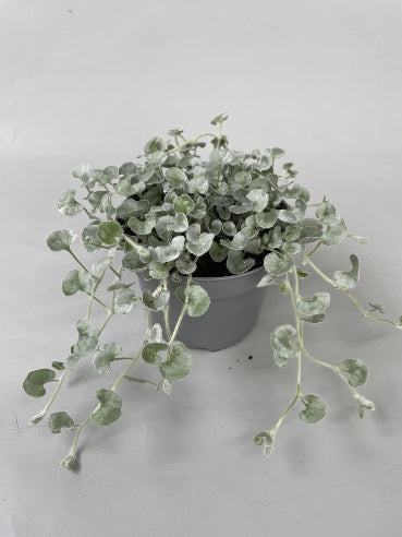 Silver Falls (Dichondra argentea ‘Silver Falls’) er en dekorativ, hurtigtvoksende plante med lange, sølvgrå ranker, der smyger sig smukt ud over krukkekanter og ampler. De små, runde blade giver et let og luftigt udtryk, perfekt til at bløde hårde linjer op og tilføje kontrast til grønne og blomstrende planter.