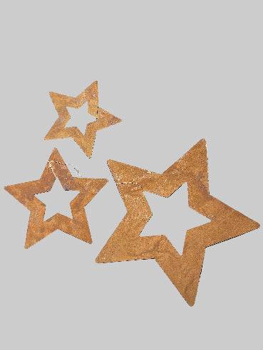 Dekorativ stjerne i metal med flot rustpatina, der giver et rustikt og hyggeligt udtryk. Perfekt til ophæng i vinduet, på væggen eller som en del af en juledekoration. Den varme farve og enkle form passer smukt ind i den nordiske stil – både inde og ude.