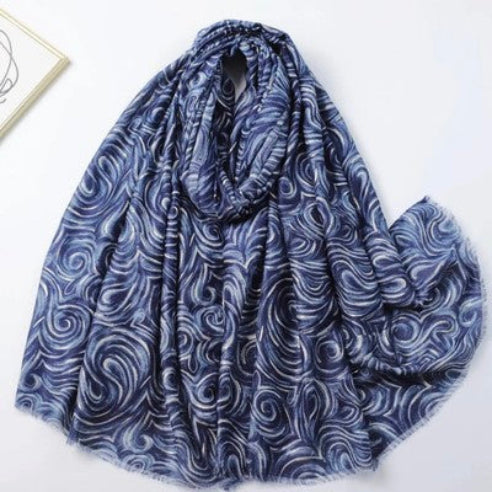 Let og blødt tørklæde i en skøn blanding af viskose og bomuld. De smukke blå nuancer og det elegante farvespil gør tørklædet til et stilfuldt valg, der nemt løfter ethvert outfit – både til hverdag og særlige lejligheder.